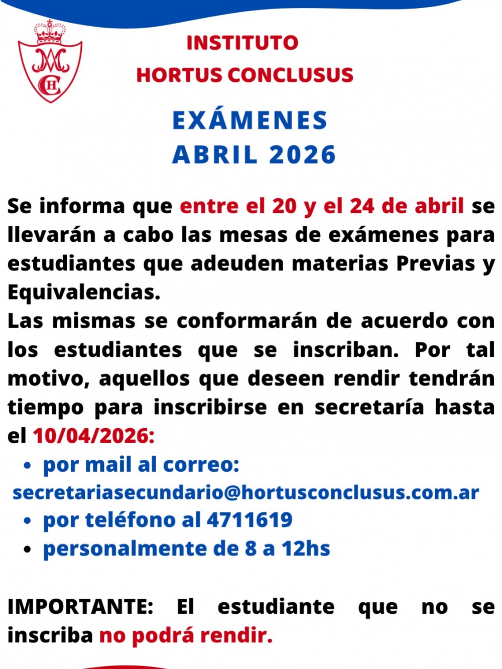Exámenes Abril 2026 Secundario