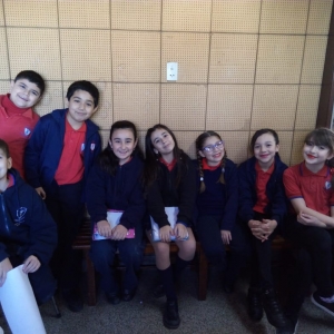 Alumnos de Nivel Primario durante la novena de la Virgen del Huerto grabaron canciones en honor a María para la Procesión de nuestra Madre.
