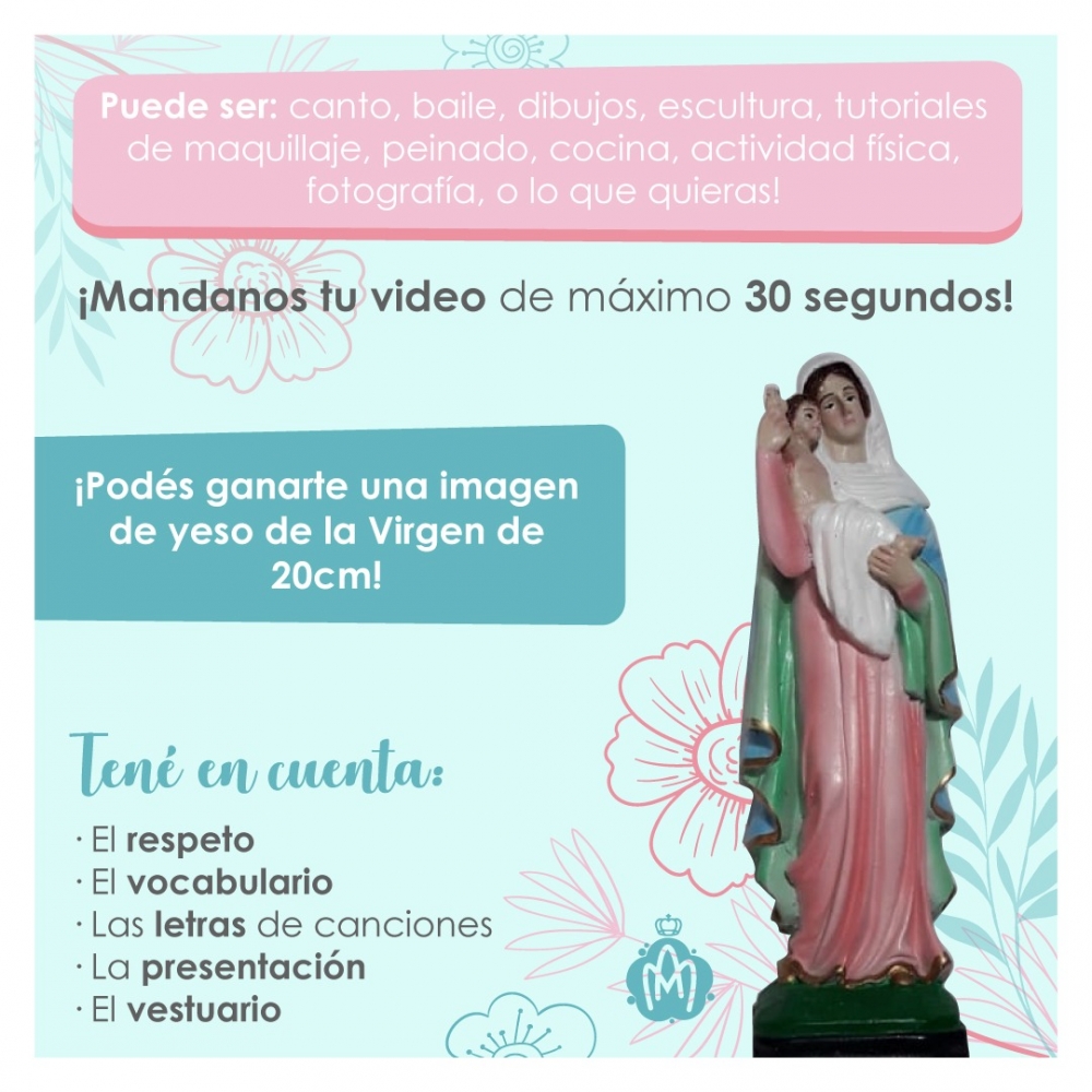 Los invitamos a participar entregando un talento o una habilidad a nuestra querida Madre del Huerto, subiéndolo al Link del Padlet que se encuentra en la Aulas Virtuales de Catequesis.