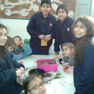Éstos y muchos otros interrogantes dieron como iniciativa un trabajo conjunto entre las salas de 4 y los alumnos de 6° grado. : la realización de una Huerta Escolar Aromática.