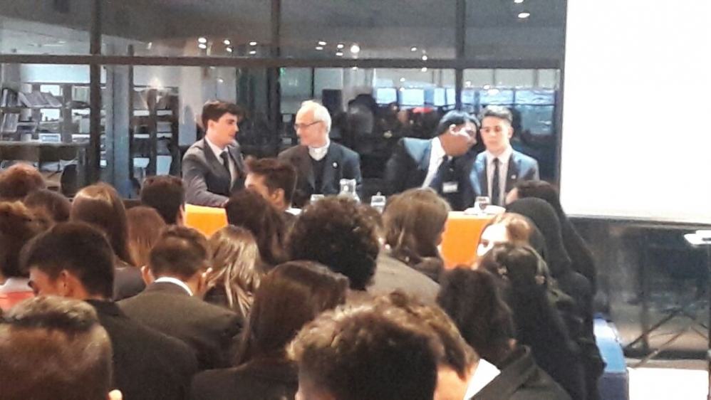 Alumnos de quinto año de la especialidad de Ciencias Sociales de nuestra institución participaron el pasado 7, 8 y 9 de septiembre del Modelo de Simulación de la XXI Conferencia de Partes (COP) de la Cumbre Mundial del Medioambiente, organizada conjuntamente por la Organización Argentina de Jóvenes para las Naciones Unidas y la Agencia Córdoba Joven de la Provincia de Córdoba, teniendo como sede la UCC.